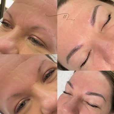 Semi-permanent eyebrow treatment designed to create fuller, natural-looking brows with precise, hair-like strokes. This technique enhances shape, definition, and symmetry while blending seamlessly with your natural brow hair for effortless, long-lasting beauty.